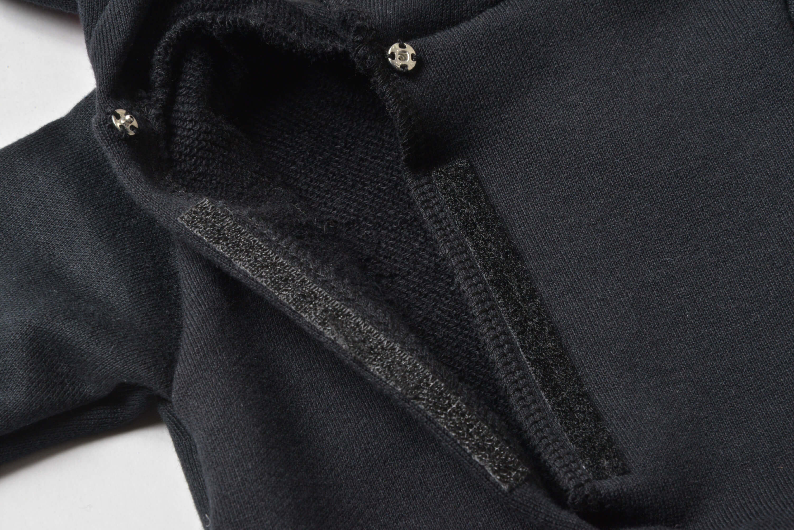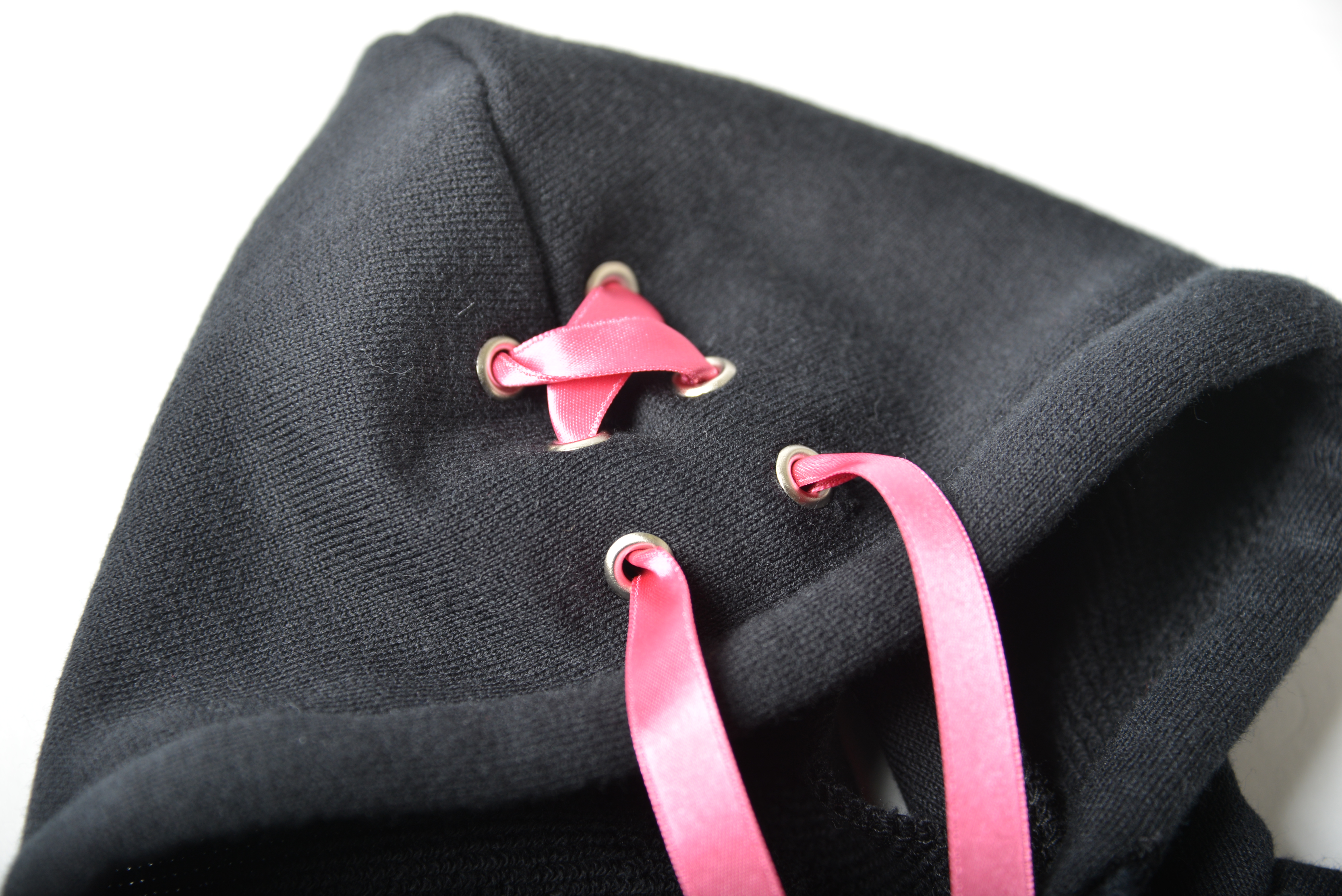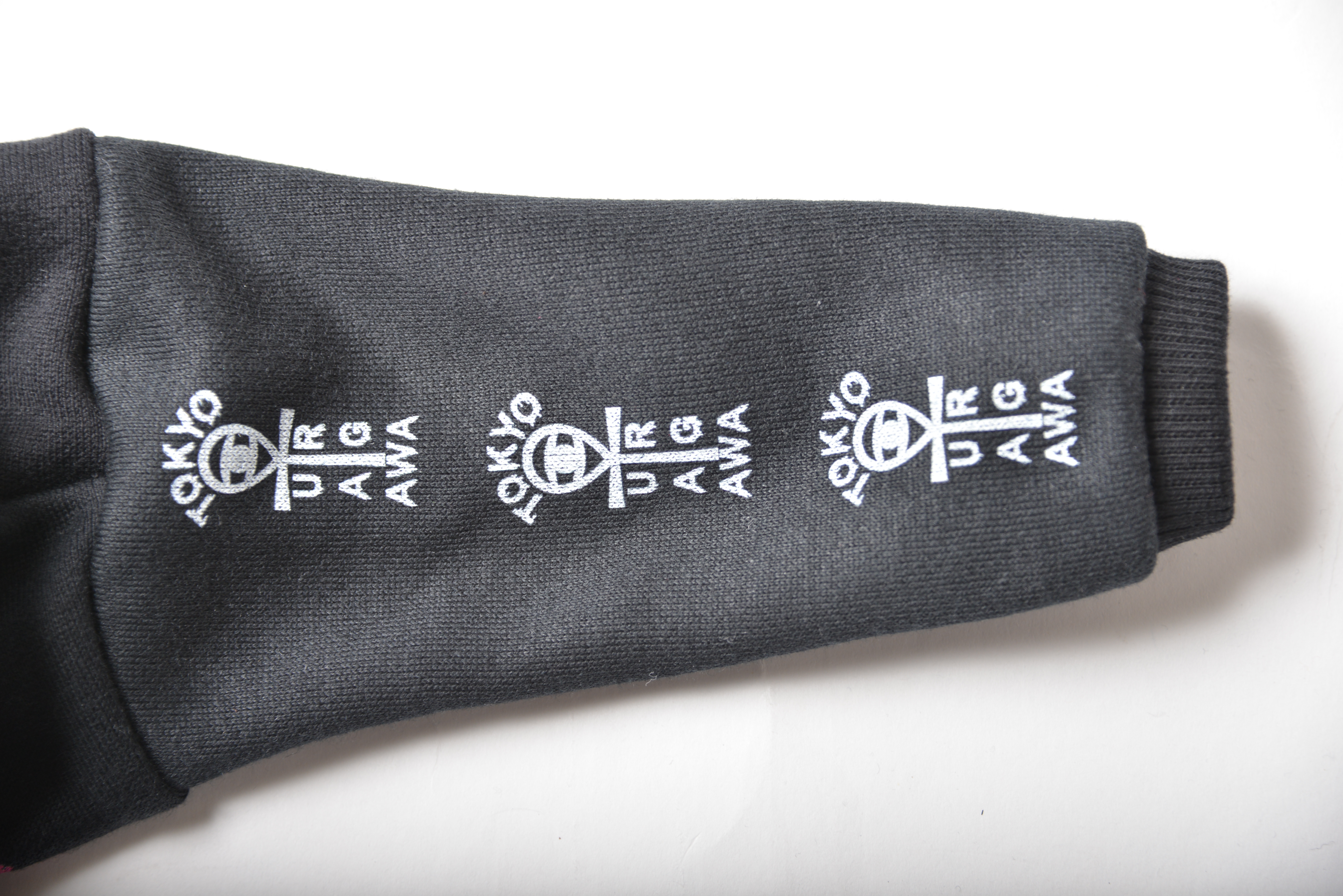 サイドジップでフードの部分にハトメを打ち付けてサテンテープを取り付けてあるボディは東京裏側の オリジナルボディ。